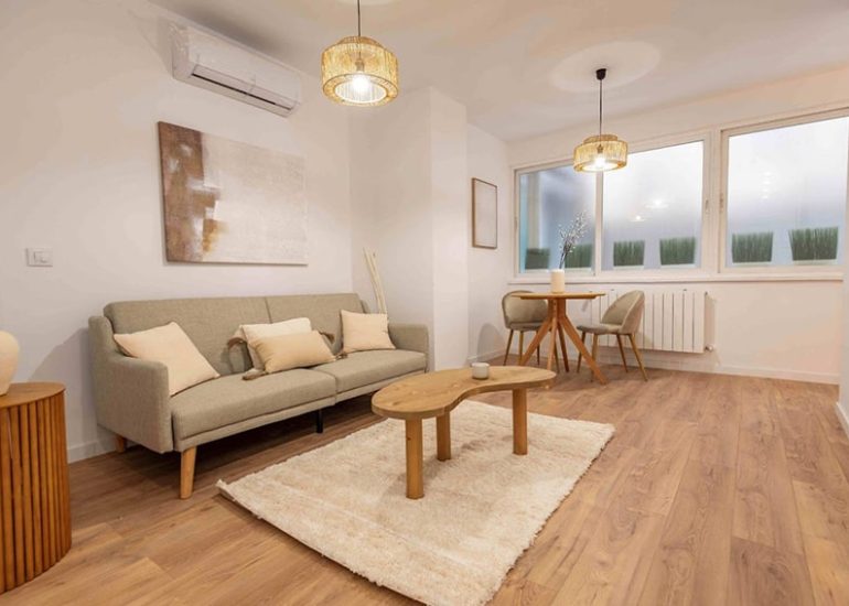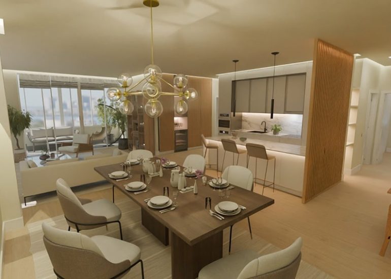 Render inmobiliario profesional de un piso reformado en Bernabéu El Viso Madrid, imagen para venta y alquiler de propiedades