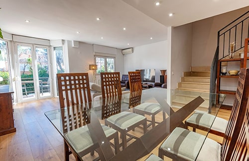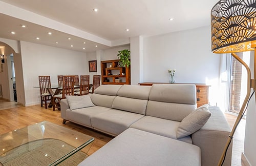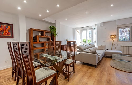 Salón moderno y luminoso, capturado con nuestra **fotografía inmobiliaria profesional** en Torrelodones, para atraer compradores interesados.