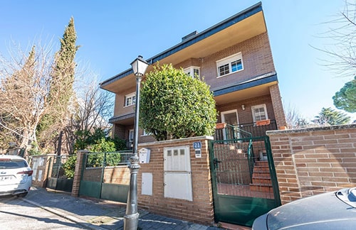 Impactante vista de la fachada de una propiedad destacada en Torrelodones, ideal para venta o alquiler. **Fotógrafo inmobiliario** experto en resaltar cada detalle.