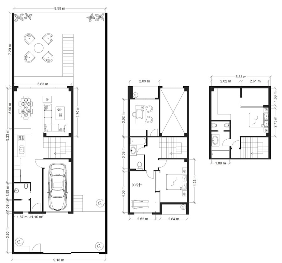 Mira este ejemplo de un chalet adosado de 3 plantas con jardín. La entrega se hace en PDF, eso permitirá que puedas agrandar el tamaño de la imagen sin que pierdas resolución.