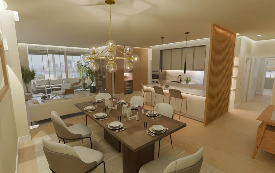 En esta ocasión, realizamos un render inmobiliario profesional para un piso ubicado en la prestigiosa zona de Bernabéu – El Viso, en Madrid. Este proyecto incluyó la creación de imágenes hiperrealistas que muestran el resultado final tras una reforma integral, con un enfoque moderno y atractivo, pensado para facilitar la venta o alquiler de la propiedad.